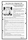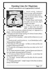 This compendium is a compilation from a very different source, and the potential is truly mindboggling as this book will demonstrate. For with my new "co-authors" I bring you this collection of icing to your magic performances, - not a single line "lifted" from any of the above-mentioned "authors", and with nearly 2000 chuckles or guffaws in over 100 pages to add to your presentation. And these are just a sampling, once you realise the scope and potential, you can create as many more as you need.