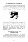 Other branches of magic are represented by A New Coin Production, to be used either in The Miser's Dream or independently; a "coin penetration" by Tom Osborne; Louis Tannen's Coins from Hand to Hand; a handkerchief production from candle; the familiar Handkerchief, Candle, and Tube, but performed without the usual faked metal "candle"; several billiard ball sleights; fifteen "useful gimmicks"; The Chinese Rings (8 pages), including three "moves" by Cardini; a farcical episode by Audley Walsh, making use of a dove pan and the help of two boys from the audience; sleights with thimbles; and a simple but effective feat in "telepathy" by Frank Kelly. In the section entitled Stage Tricks and Illusions are found a magical sketch called Professor Woofledust and the Neophyte, which strikes us as being neither humorous nor in good taste; an impromptu Cutting a Woman in Two, which bears no resemblance to either the Goldin or Selbit illusions that this title brings to mind; and The Fairy Fountains of Ten Ichi, which is well explained in eight pages of text with ten cuts.