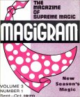 The Magigram ran for around twenty-seven years and started with the first proper issue in September 1966 and ended in February 1995, in total more than 22,000 pages. Almost every well-known magician from those years made some form of contribution to the magazine including Billy McComb who had an inspiring regular column. The magazine started life as a vehicle for advertisements for the Supreme Magic Company but soon developed into a proper magazine that many magicians took out on subscription. Every branch of magic from close up to illusions was covered and it was one of the most popular UK magic magazines ever.