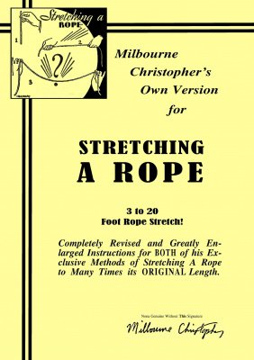Completely revised, these greatly enlarged instructions include both of Milbourne Christopher's exclusive methods for stretching a rope to many times its original length. No hidden reels, magnets, or special rope needed. Regular, soft cotton magician's rope works fine for this. This will be a show-stopper in your act. Also makes a terrific introduction to a cut 'n restored or ring-on-rope routine.