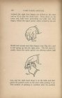 In the second section of the book (81 pages, 36 illustrations) are sleights (some old, but many new) which were specifically and exclusively designed for card magic. There are, for example, five shifts (or methods of making the pass), including a beautifully devised "diagonal palm shift" which, if perfectly executed, enables the performer to replace a chosen card unmistakably in the pack, merely square the cards, and yet extract the selected card and palm it in the left hand, instantaneously and without fumbling. There are, also, a blind shuffle for securing a selected card; explanations of card-forcing and card palming (with an inadequate description of the "back palm"); four methods of "changing" and eight of "transforming" cards; five ways of "blind shuffling" while retaining the whole pack in its original order; four devices for discovering a card that has merely been thought of; and several other sleights. Finally, the author explains seventeen card tricks, which have little of novelty about them and are, we feel, described with undue brevity. We should note, however, the unusually good patter that is provided for The Cards Up the Sleeve and three or four other tricks. It is vastly superior to the patter, found in most of the current "patter books."