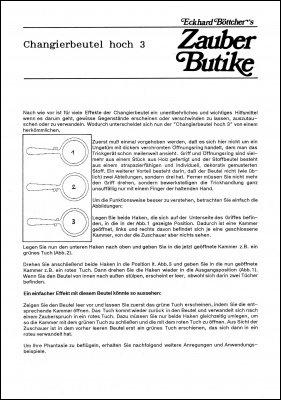 Eckhard Böttcher hat über die Jahrzehnte mehr als 1000 Tricks und Effekte über seine Zauber Butike Firma vertrieben. Jeder Trick wurde detailiert beschrieben und oft mit seitenlangen Anleitungen ausgeliefert. Diese Anleitungen beinhalten wunderschöne Routinen - oft Eigenkreationen von Eckhard Böttcher, Tips, Illustrationen, Fotos und manchmal sogar lange Literaturverzeichnisse. Wir haben diese Trickanleitungen digitalisiert und bieten sie in 22 Bänden an. Jeder Band besteht aus etwa 50 Trickanleitungen.